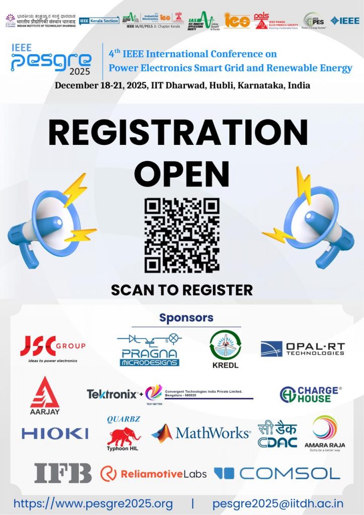 Be part of the 4th IEEE International Conference on Power Electronics, Smart Grid, and Renewable Energy (PESGRE 2025) , organized by IEEE IA/IE/PELS Jt. Chapter Kerala in association with IIT Dharwad where academia, researchers, and industry leaders converge to discuss innovations shaping the future of power and energy.