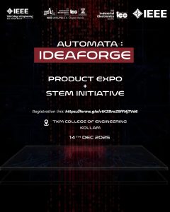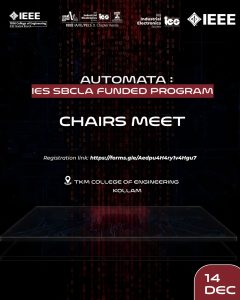 Organized by the IEEE IA/IE/PELS Joint Chapter Kerala in collaboration with IES SBC TKMCE, as part of AUTOMATA – the IES SBCLA Program.Step into a world of innovation!